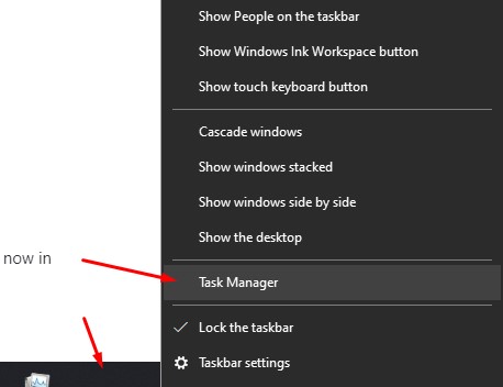 Step 1: Right-click on the taskbar and then choose Task Manager.