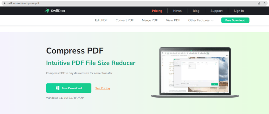 Unlike the zip format, the PDF format has some limitations. To compress PDF files, you need to use SwifDoo PDF, which is a dedicated PDF compressor and editor. After installing the program, you can use it for free for 15 days.
