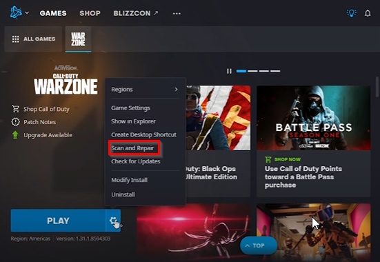 Scan & Repair the Battle Net App