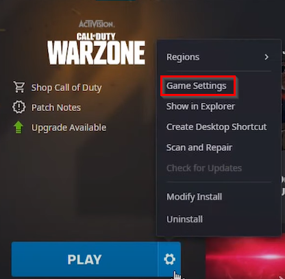 - Select “Game Settings” and then choose Modern Warfare from the drop-down menu.