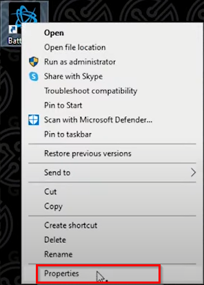- Right-click on the battle.net icon and select “Properties.”