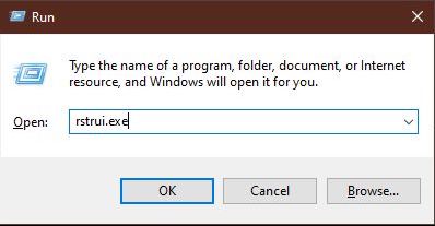 - Type rstrui.exe in the Run dialog box and press Enter or click OK.