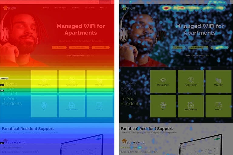 Website Heat Maps show how users interact with a website in a visual way. They will demonstrate how far users have scrolled, where their mouse has hovered, and where they have clicked. This is useful for determining where changes to a webpage should be accommodated in order to optimize the user experience, thus increasing website conversions.