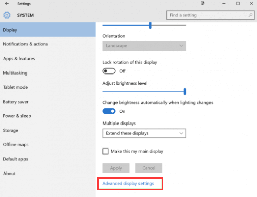 - From the menu click on Display Settings > Advanced Display Settings > Display Adapter Properties.