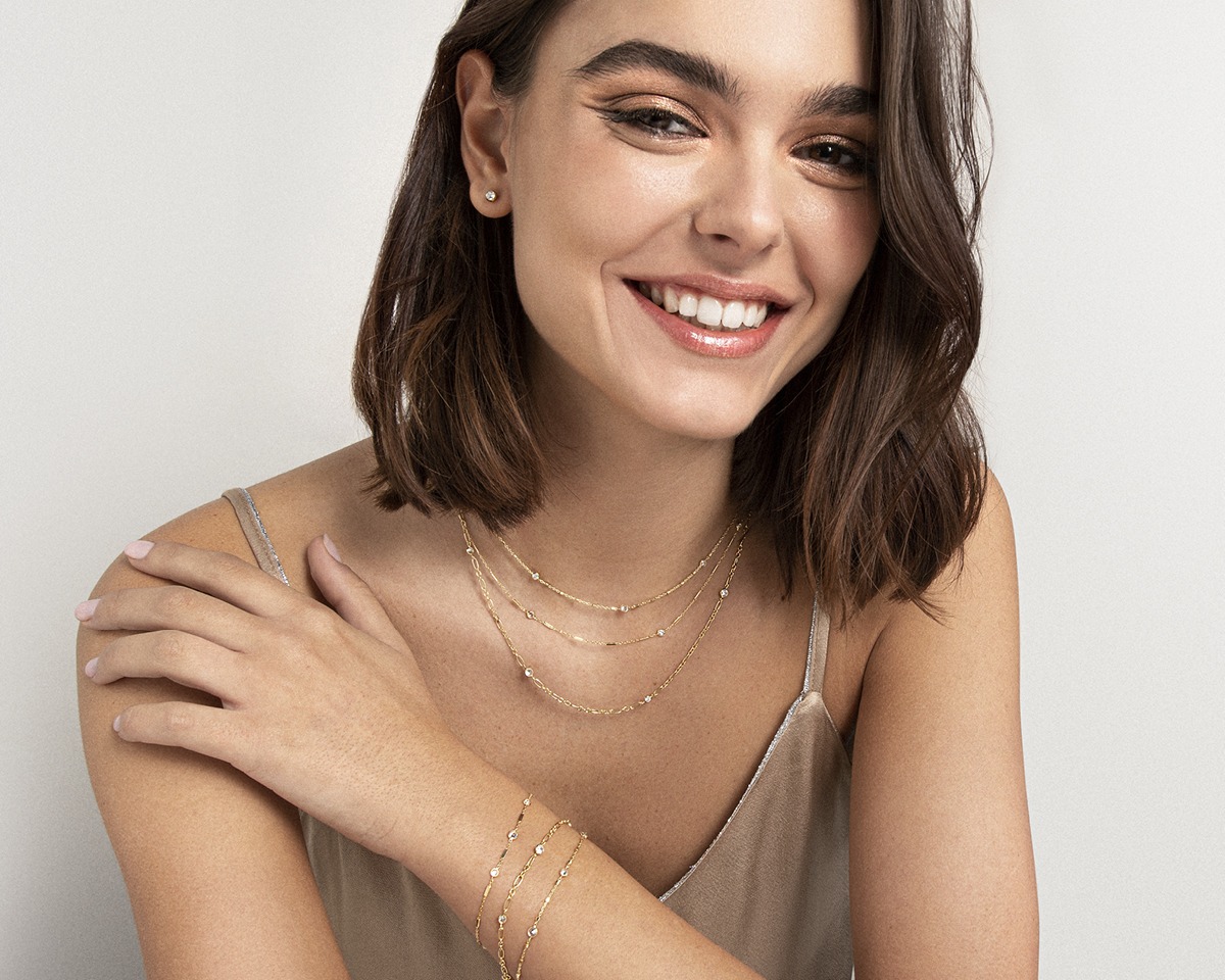 A very popular trend is a chic and minimal chain necklace, but there are different kinds of chains. The more traditional one is a cable chain, it’s composed of uniform oval links interlocked together. It can vary in dimension, with smaller or bigger ovals.
